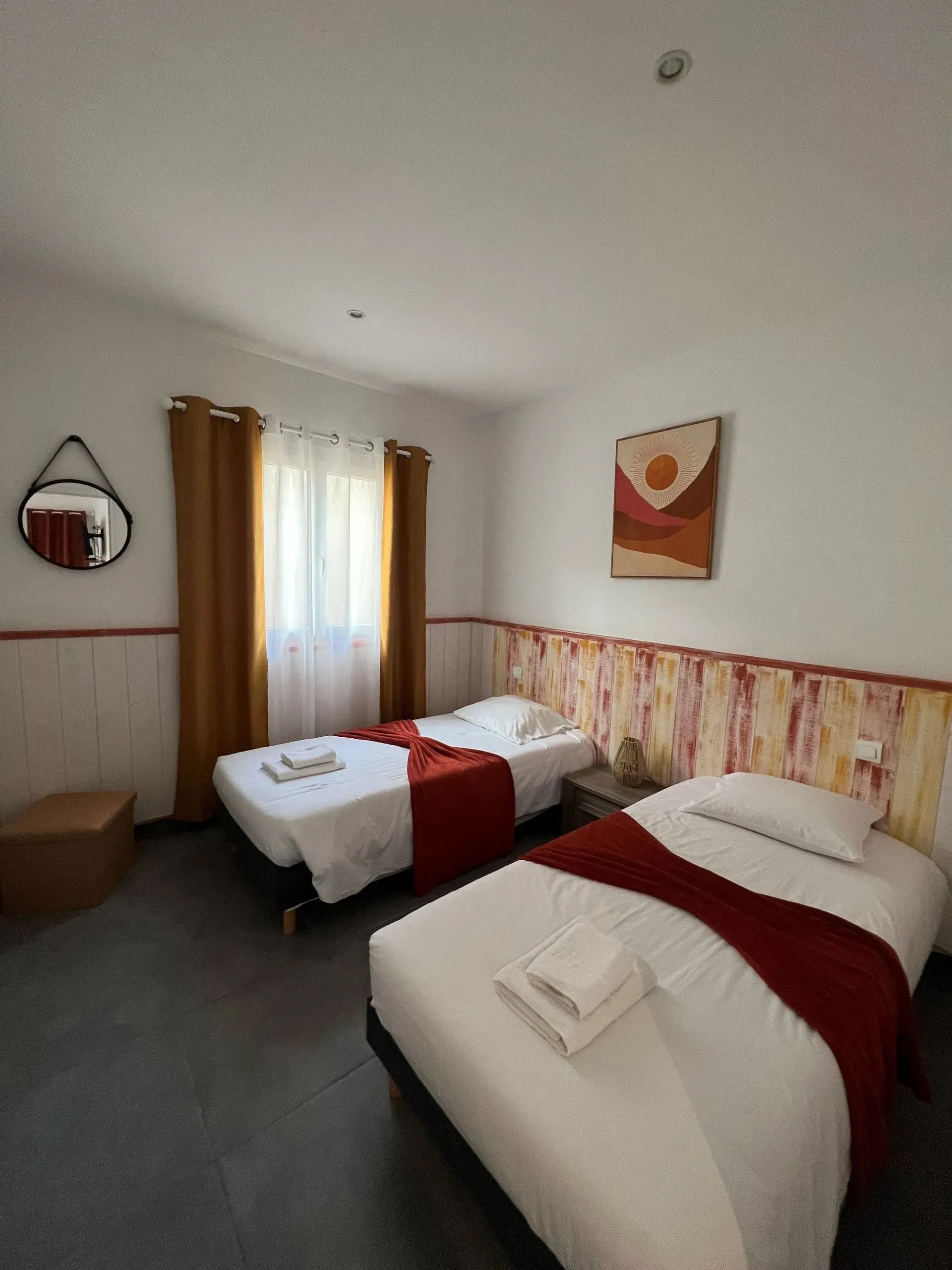- de 2 chambres climatisées avec 1 lit double, 2 lits simples et 1 lit d’appoint ;