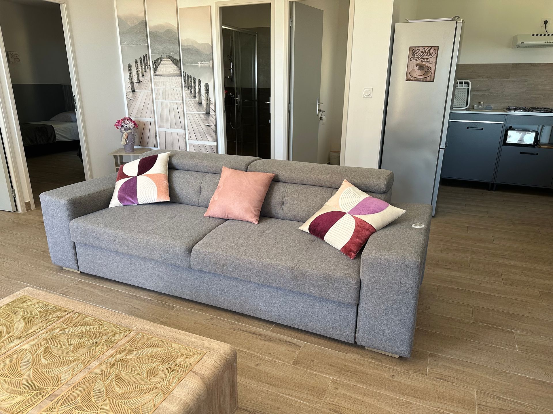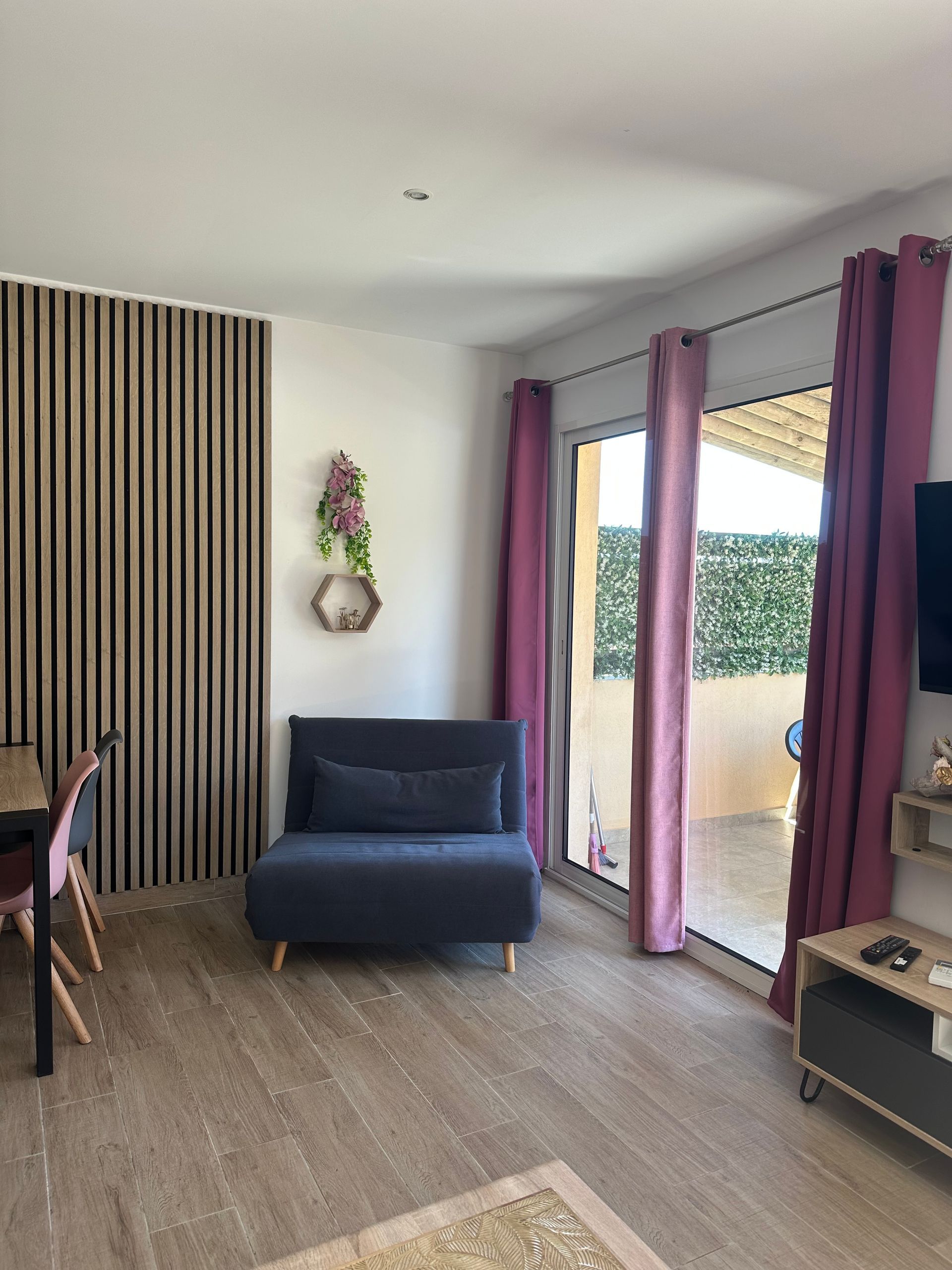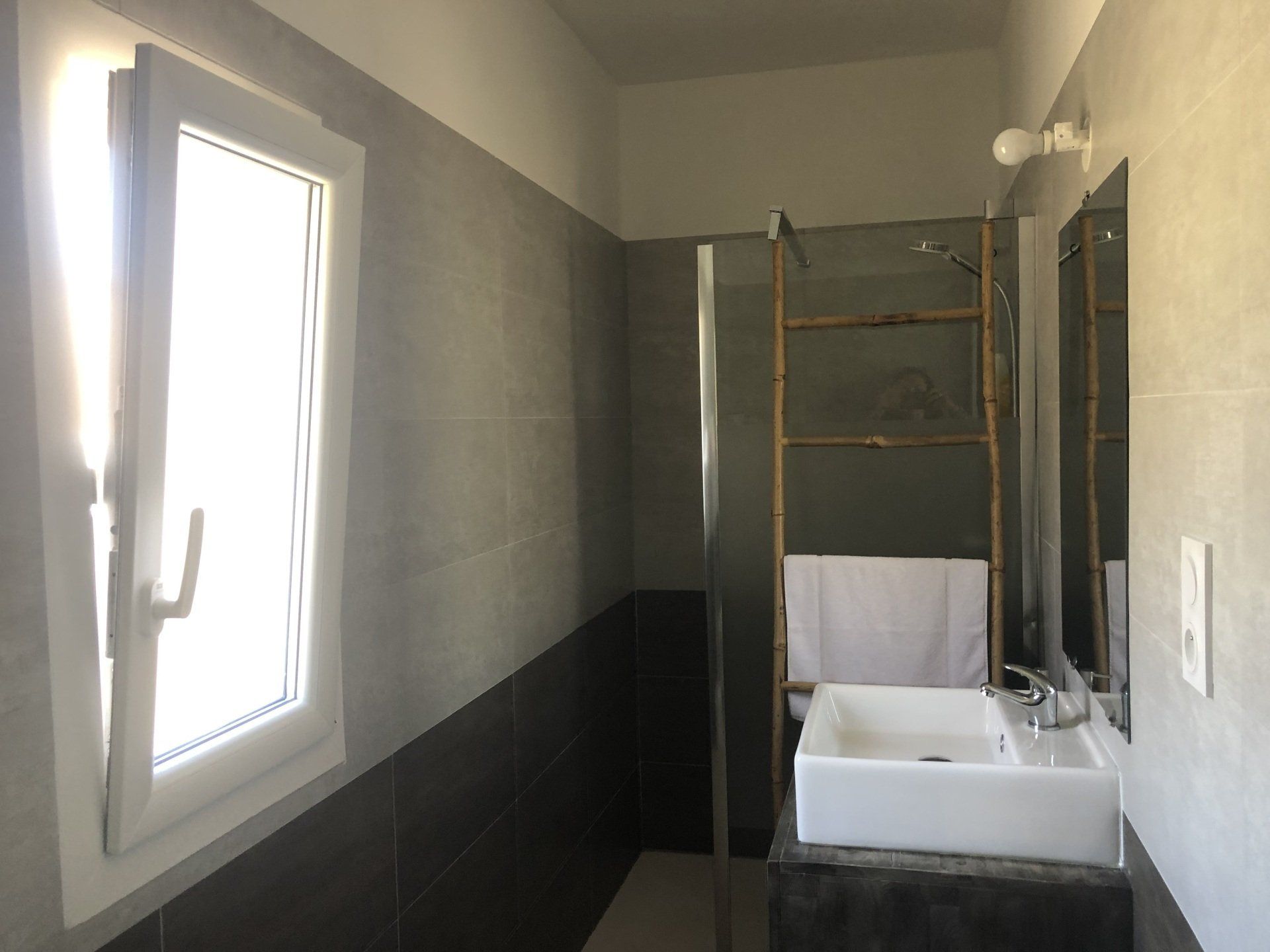 Nos trois appartements de plein-pied sont identiques, Le Paraguan, Le Tonnara, Le Maora. (Les couleurs représentées dans le 360° ont été changées.)